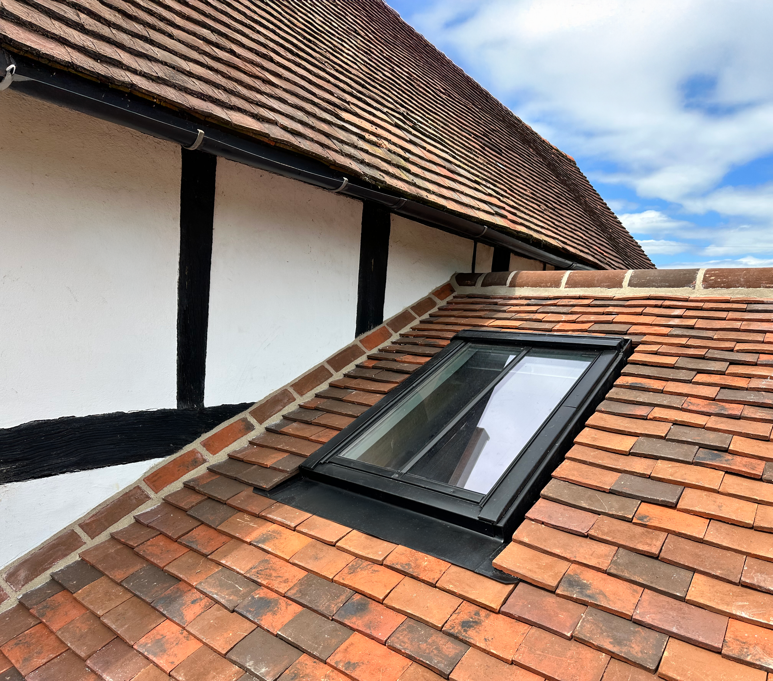 Conservation roof light & Sussex traditional clay roof tiles. Michael Stenning Roofer, Michael Stenning Roofing, Stenning Roofers